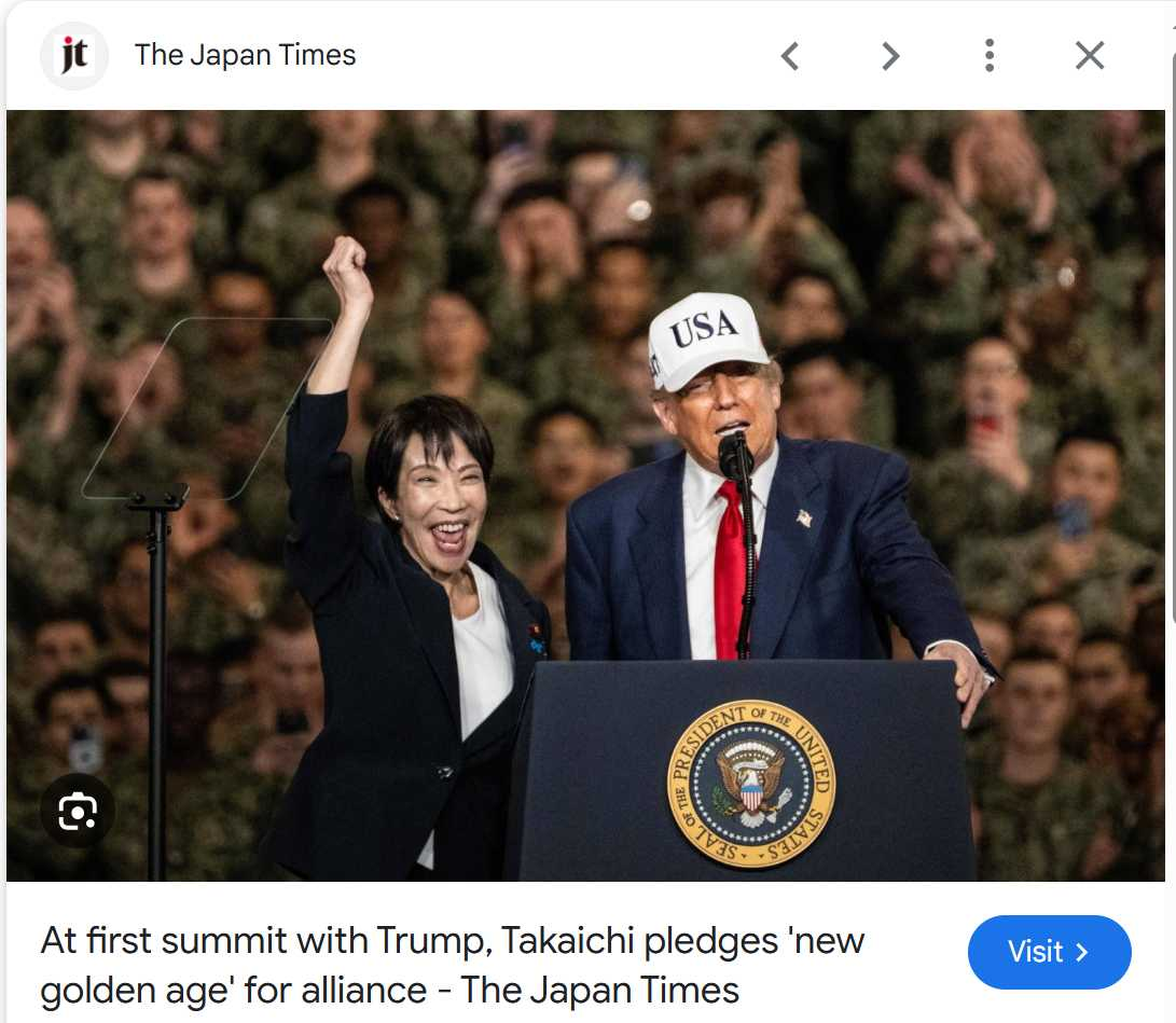 Even the western woman right groups have no good reason to object to this visionary cooperation amicably agreed by Trump and Takaichi. )
