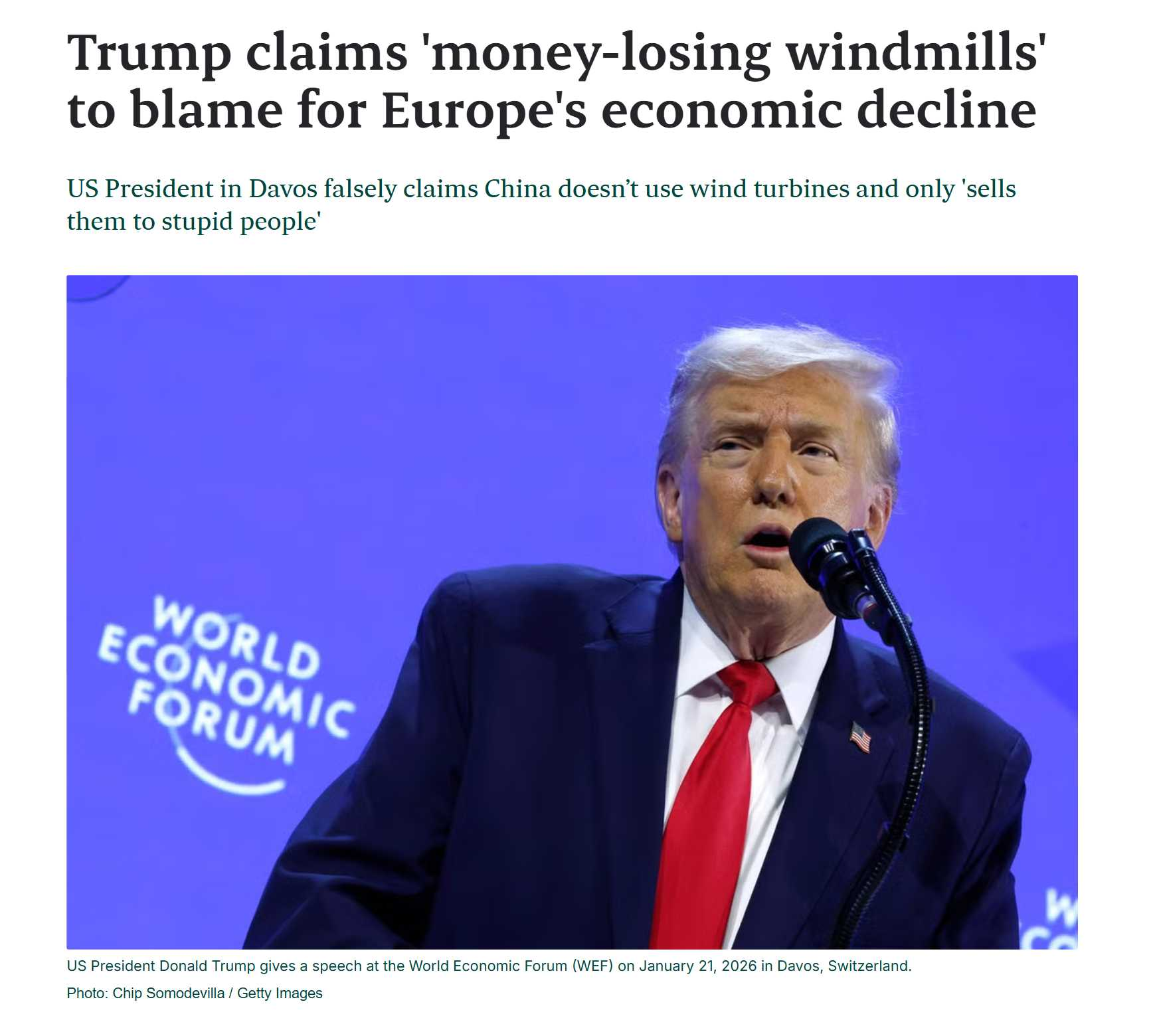 "China doesn't use wind turbines and only 'sells them to stupid people. I fart and I blow without any wind power."